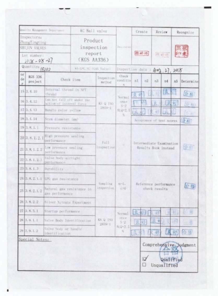 황동가스볼 시험성적서